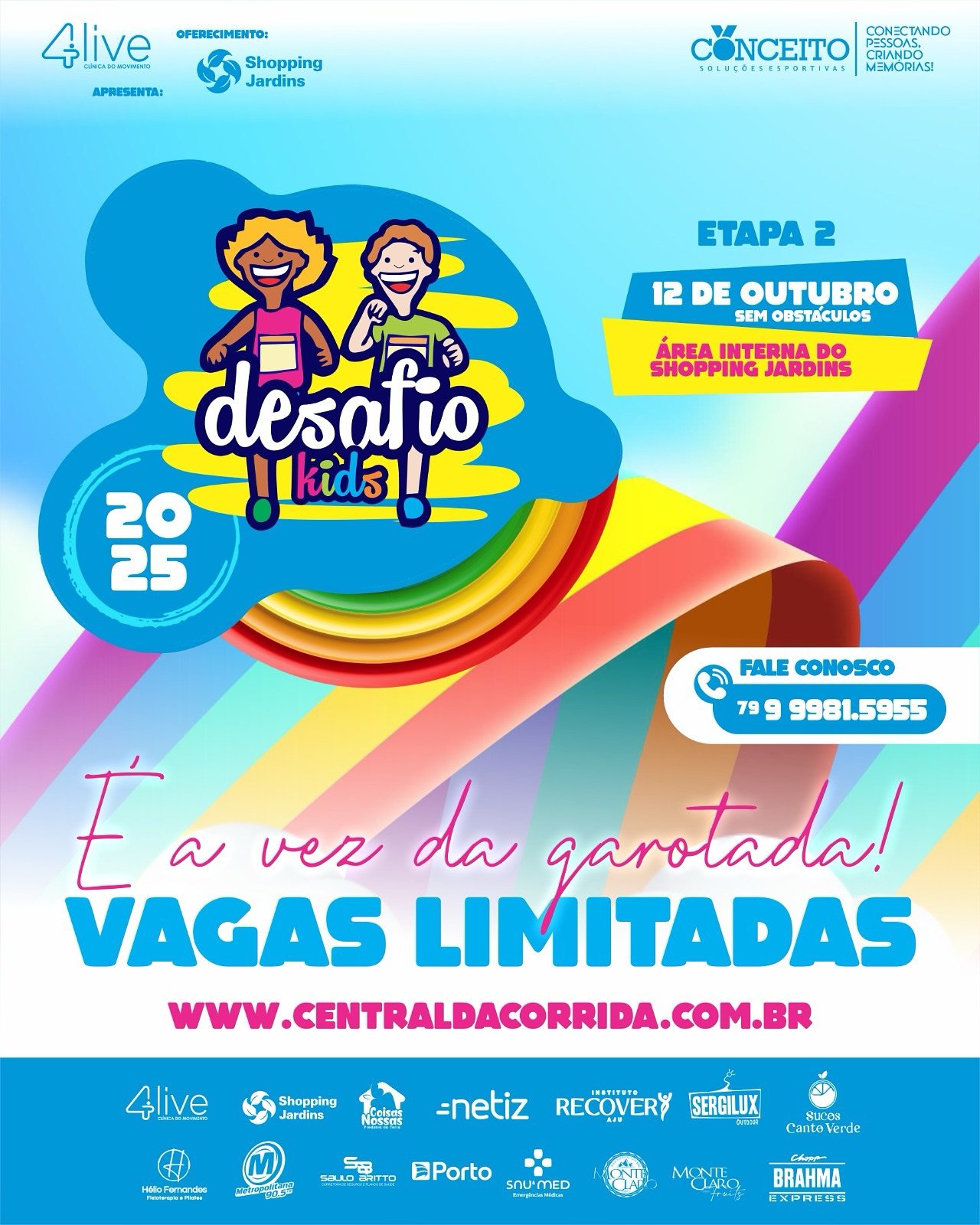 Conceito Eventos Esportivos promove a 2ª etapa do Desafio Kids 2025, uma competição lúdica e saudável que celebra o Dia das Crianças com atividades esportivas, recreação e integração para crianças de todas as idades.