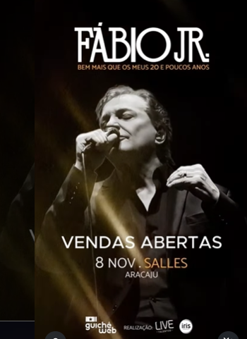 A Íris Produções apresenta o show “Bem Mais Que Os Meus 20 e Poucos Anos” com o cantor e compositor Fábio Júnior, em uma noite especial que celebra sua carreira de mais de quatro décadas, revisitando sucessos que marcaram gerações.