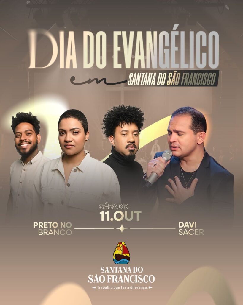 DIA DO EVANGÉLICO SANTANA DO SÃO FRANCISCO 🎤 PRETO NO BRANCO 🗓️ 11.OUT📅 SÁBADO 🎵 DAVI🎤 SACER 📍 SANTANA DO SÃO FRANCISCO https://www.instagram.com/governodesantana/