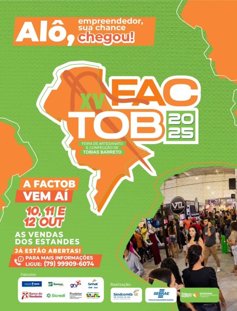 XV FACTOB 2025 A Prefeitura Municipal de Tobias Barreto realiza a 15ª edição da FACTOB (Feira Agropecuária e Cultural de Tobias Barreto), consolidando-se como um dos maiores eventos do agronegócio no estado, com exposições, leilões, shows e gastronomia típica. PROGRAMAÇÃO 🐄 Exposição Agropecuária: Leilões de gado de corte e leite Feira de máquinas e implementos agrícolas Palestras técnicas e […]