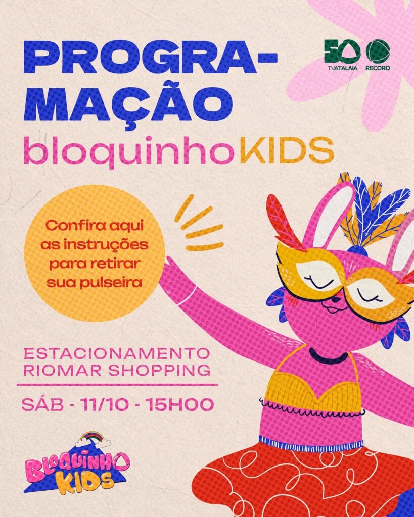 PROGRAMAÇÃO 👧 bloquinhoKIDS 🎟️ Confira aqui as instruções para retirar sua pulseira 🅿️ ESTACIONAMENTO RIOMAR SHOPPING 📅 SÁB – 11/10 – 15H00 https://www.instagram.com/riomararacaju/
